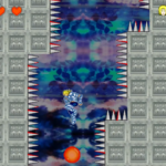 While there’s nothing complicated going on here, it’s still solid with a mix of basic platforming in addition to obstacles that feel ripped out of a Mega Man level. You’ll dodge spiked walls and jump across disappearing blocks. Though there is this annoying mechanic where you have to land on moving boars in a very precise spot on their back. If you miss, you lose a third of your life.