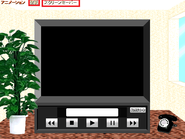 Possibly due to being an emulated PC, the two menu items at the top of the video player cannot be selected (highlighted in red). The right most option says Screen Saver. In general, my instance of the video player is very buggy and basically unusable.