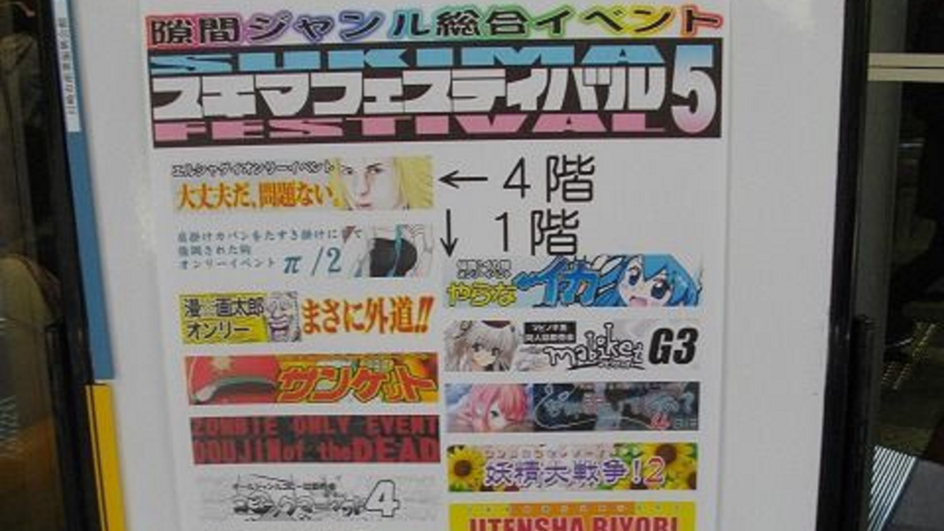 From what I’ve seen online, Sukima Festival seems fairly similar to any other doujin market, or artist alley at a western convention. Fans meet, trade works, sell goods, cosplay, etc.